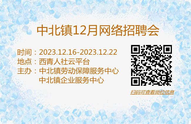 兹定于2023年12月16日举办“中北镇12月网络招聘会”,诚邀广大求职者和企业报名参加。
